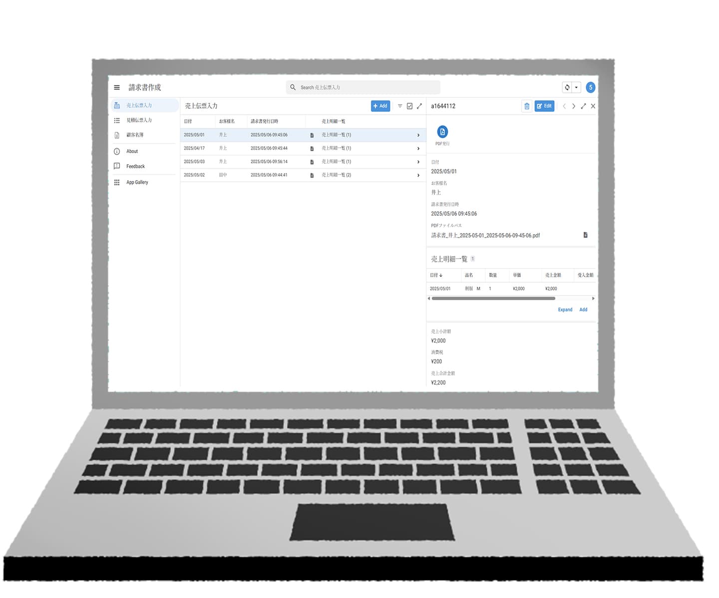 今回のソフトは、Google Driveを使って”Appsheet”のアプリで作成しました。すべてのデータは、Google Drive内に保存され管理されますので、ネット環境があればどこでも操作可能です。