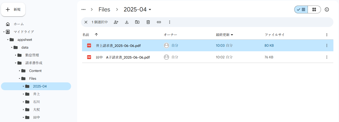 Google Drive内に必要なフォルダが自動作成され整理されますので、検索も可能で一目瞭然です。