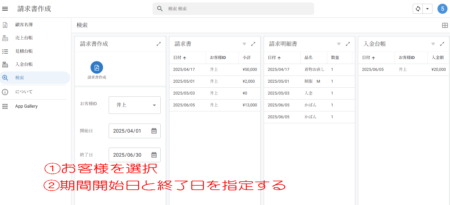 今回のソフトは、Google Driveを使って”Appsheet”のアプリで作成しました。すべてのデータは、Google Drive内に保存され管理されますので、ネット環境があればどこでも操作可能です。
